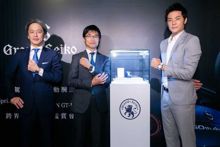 ▲(右起)姚元浩與設計師久保進一郎、台灣精工總經理前田健一共同出席凌駕巔峰.撼動腕間 GS Spring Drive 20th x NISSAN GT-R 50th跨界聯名腕錶鑑賞會活動。