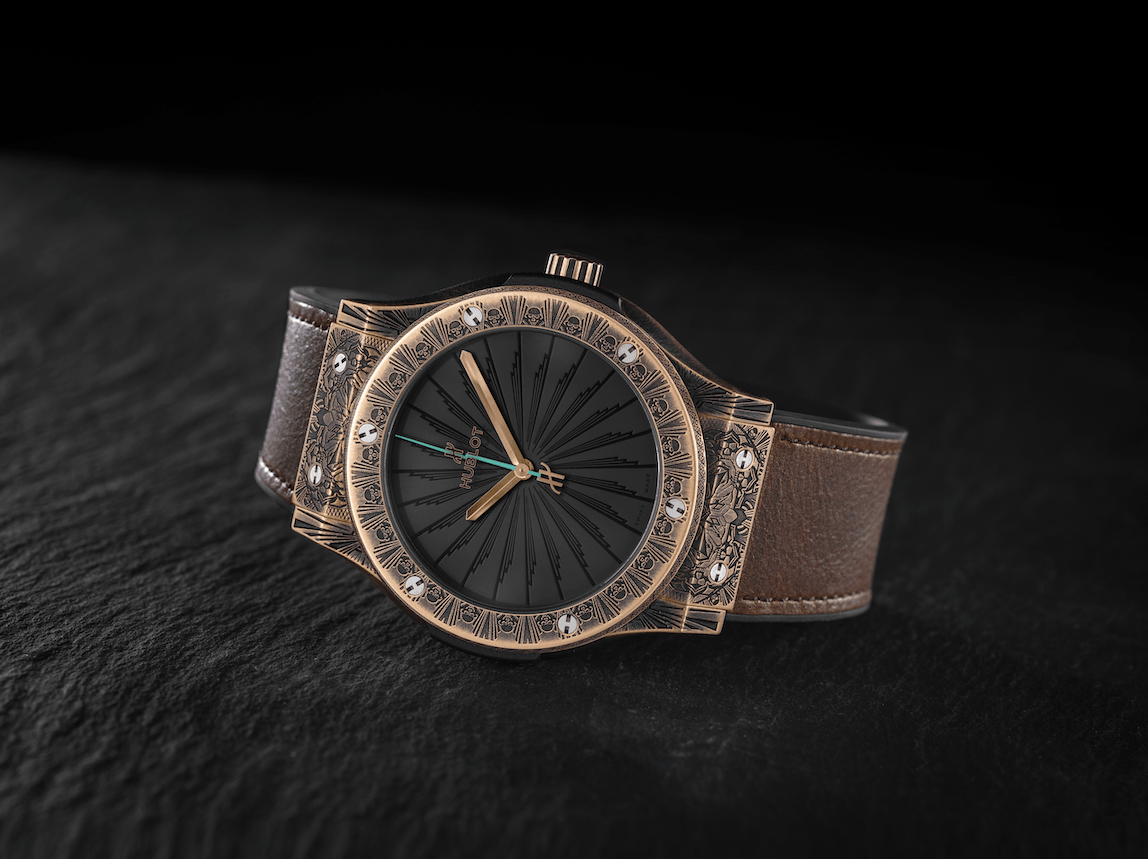青銅材質/HUB1100自動上鍊機芯/時、分、秒顯示/藍寶石水晶鏡面/防水50米/錶徑45mm/限量100只/參考價:NT$ 520,000