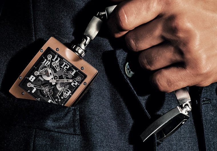 ▲RM 020利用錶冠替換設計,能夠輕鬆轉換於懷錶與座鐘形式,呈現一錶二用的多元佩戴性。