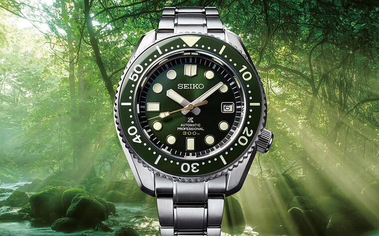 這款潛水錶外型上最大特點為深綠色的面盤與錶圈。華麗的色彩映現出日本群島南端屋久島上古代雪松蒼翠的色澤。至於它採用的氧化鋯陶瓷錶圈可高度抗括耐磨,不鏽鋼錶殼也有超硬質塗層,藍寶石水晶內部與外部均有防眩鍍膜處理。錶圈上的5、10、15與20分的標示塗上超強夜光塗料(Lumibrite),以增加旋轉錶圈的可讀性,同時單向旋轉設計則確保了佩戴者計算下潛時間的安全性。