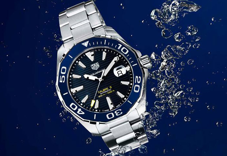 這款Aquaracer採用了陶瓷錶圈,再來它的時標和指針都有加粗並加上SuperLuminova夜光物料,這種不受環境影響的視讀效果也是潛水錶所必備的。另外豪雅還幫面盤加上了橫條紋裝飾,並巧妙運用對比色來點綴秒針尖端以及面盤六點方向的機芯與防水性能字樣,雖然錶款功能僅是基本的大三針,不過面盤的設計卻不會讓你覺得無聊單調,至於這款搭載的Calibre 5也是豪雅使用多年,品質受到肯定的基礎機芯,日常佩戴綽綽有餘。
