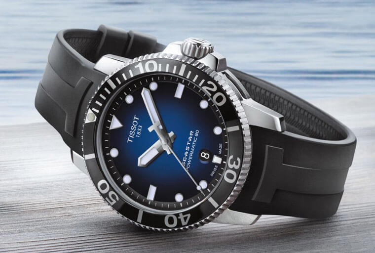 Seastar 1000海星潛水1000系列光是自動排氦氣閥的設計,就讓人覺得它的架勢十足,錶款可以承受約水下300米深度的壓力。錶款採用夜光設計的T字形指針和時標,在光線昏暗的水下世界也能毫不費力地清晰讀時。陶瓷錶圈擁有可逆時針單向旋轉的安全功能,根據氧氣瓶的消耗時段設置了20分鐘的安全時間,期間每分鐘均有標記,並且每5分鐘指示一次,令水下活動佩戴這款錶更令人安心,錶款除了有漸層藍面的面盤配色,也還有純藍、純黑面的選擇,同樣配置陶瓷圈,不論搭配膠帶或鍊帶,價位都不超過25K,堪稱是入門陶瓷水鬼的最佳踏腳石。(這系列2019年還推出了搭載石英機芯的計時款,雖然沒有陶瓷圈,但是價位也更甜了,同樣可以列入參考。)