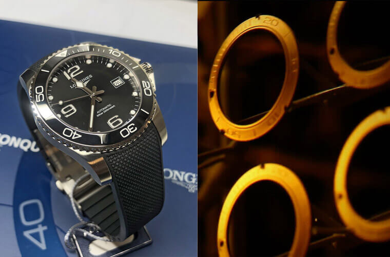 浪琴的深海征服者2018年有了重大的突破——改款之後從原本的鋁圈升級成陶瓷圈,剛好可以彌補了傳統鋁質錶圈的可能缺陷(例如容易刮傷甚至還聽說過會褪色等),而且浪琴也利用這次材質升級的機會一併微調了錶款的造型設計,像是錶圈僅前15分鐘有刻度可以作為下潛時間的提示,而面盤看起來也變得更俐落,因為浪琴拿掉了原本在圓形夜光時標上的柱形副時標、錶圈上的五邊形刻度也改成纖細的線型,另外秒針接近針尖之處也多設了一枚夜光圓點,視讀性因此變得更清楚。