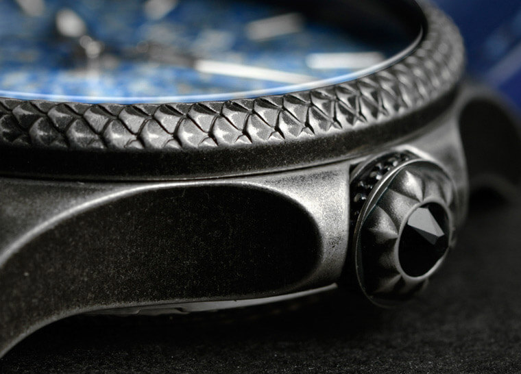 ▲煙燻處理的面盤為Makaidos腕錶賦予神祕和深邃的層次感。