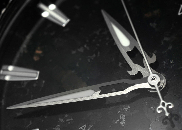 ▲透過鑽石切割技術製成了鋒光閃爍的石中劍寶劍錶針,並採用了Super-LumiNova®瑞士超級夜光物料。
