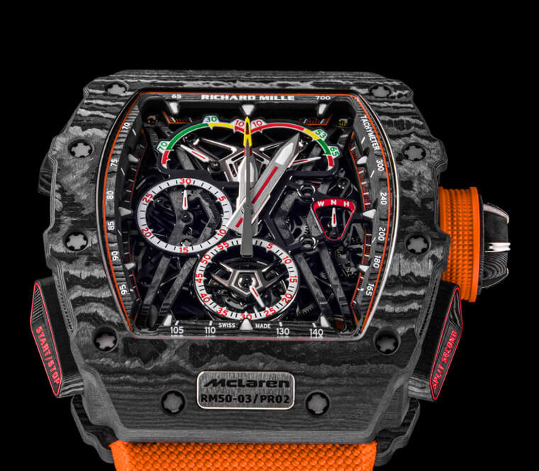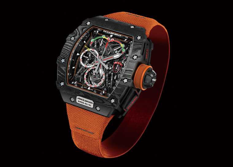 自從2016年宣佈合作以來,RICHARD MILLE便積極與McLaren合作創作前所未見的賽車錶作品,其中除了複雜功能、高強度耐衝擊的腕錶結構,雙方攜手將賽車科技材質導入腕錶創作中也是一大亮點。