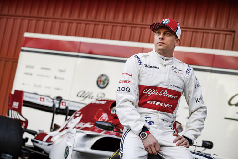 ▲芬蘭冰人Räikkönen 2019年離開法拉利車隊後轉投阿爾法羅密歐車隊,上場時得以佩戴RM腕錶。