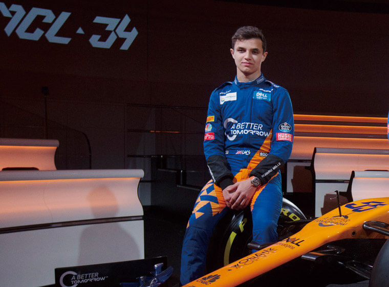 McLaren是RICHARD MILLE與三支F1車隊中合作關係最緊密的夥伴,雙方不僅已簽訂十年合約及聯手開發創新製錶材質,McLaren車隊本身就是RICHARD MILLE最佳的製錶靈感來源之一,目前品牌已替McLaren車隊創作出數款聯名腕錶,包括功能與外觀配色等,都可以窺見專屬該車隊的特色。提起McLaren車隊,2019年賽季對他們而言是煥然一新的局面,因為先前車隊的重要資產——資深車手Fernando Alonso宣布褪下戰袍改任車隊的競速大使,這使得替車隊爭取佳績的重擔一下子落入兩名年輕新世代的身上,包括西班牙車手Carlos Sainz Jr.和英國的Lando Norris,尤其後者以年僅19歲的稚齡,甫從F2層級跨入到F1這個最高殿堂,對於Norris而言,2019年賽季的F1比賽場場都是提升視野的機會以及磨練技術的大舞台。