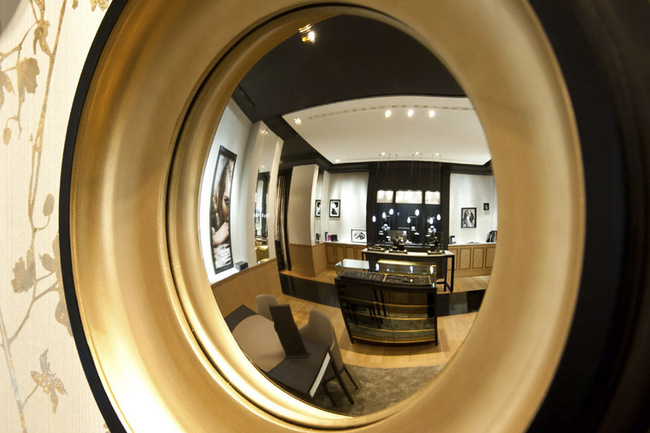 店內的陳設裝潢皆由來自巴黎Atelier Sasha建築事務所建築師的Christine Querlioz操刀設計,展現品牌全新的建築風格。令人驚艷的室內陳設配置有多處探索區域(覆罩著圓頂玻璃罩的三腳立檯,展示著入門珠寶)、引人入勝的美妙驚喜(裝設劇場活動軌道的展示櫥窗,令展示珠寶可循環移動),或是品牌歷史集錦(伯爵家族、1970年代以來的好萊塢名人照片選輯)。皮革及橡木製成的桌子、金色及煙灰色大型簾幔,與黑漆、綠鏽色、微微閃爍珠光的地毯──放眼所及盡是講究的單色媒材所營造出的溫暖、奢華氛圍,謹為了每一段充滿純然愉悅的拜訪時刻而生。「在每一處,我玩耍著亮面與霧面的對比,令光線也可以生動起來,與所使用的媒材產生互動。」建築師Christine Querlioz表示,全新感官饗宴,呈現剛柔並濟的美感。