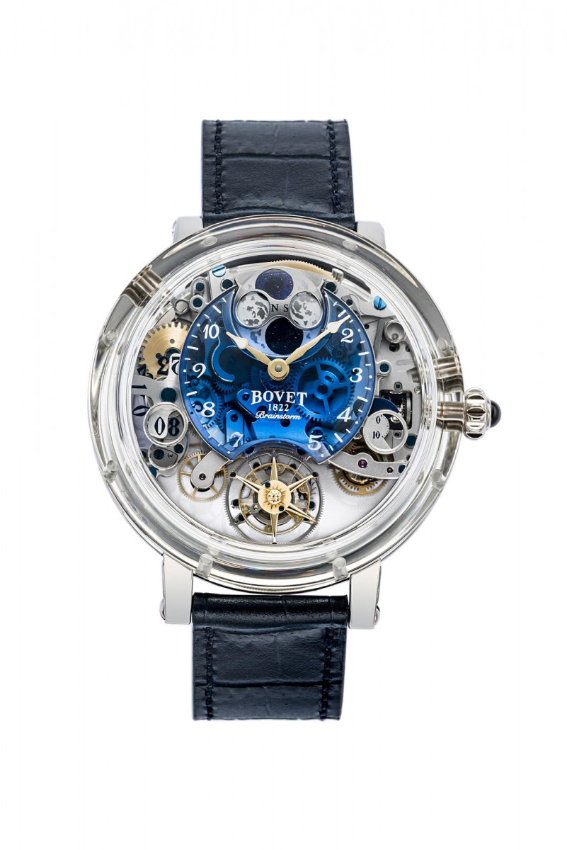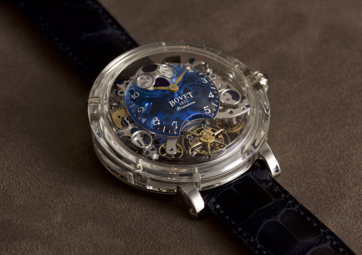 而在回歸台灣的同時,播威有兩款腕錶本次頗受注目,特別值得介紹。首先是Récital 26 Brainstorm® Chapter One腕錶。2016至2018年間,BOVET 1822推出具備獨特「書寫斜面」形錶殼的三部曲腕錶。「書寫斜面」是由Raffy先生親自設計,6點鐘位置設有傾斜錶圈,讓製錶師以圓弧形、滾輪、圓盤和立體指針等呈現多樣功能,讀時方便,符合人體工學,更增添優雅氣息。而腕錶在「書寫斜面」形錶殼内同時加入了四個專為此錶殼而設計的複雜功能。