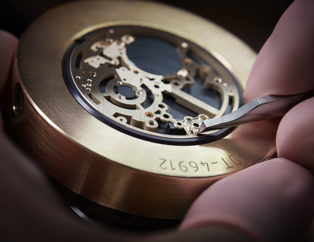 這款581機芯早已為5377及5367腕錶提供動力。如今,此機芯首次採用完全鏤空的設計,以當代造型演繹源遠流長的技術。金質夾板及錶橋經過鏤空處理,讓機械機芯優美的運行姿態展現眼前。製作工序的困難之處在於要盡量鏤空材質,同時保留各個零件的技術性能。選用金質更是挑戰難度之舉,讓製錶過程更見複雜艱巨。而機芯的潤飾和裝飾也與眾不同,夾板僅餘的表面綴以鐫刻飾紋工藝,「巴黎釘紋」以鑽石尖端的雕花工具製作,為作品帶來獨特光彩,更須以極致精準的工序方可完成。