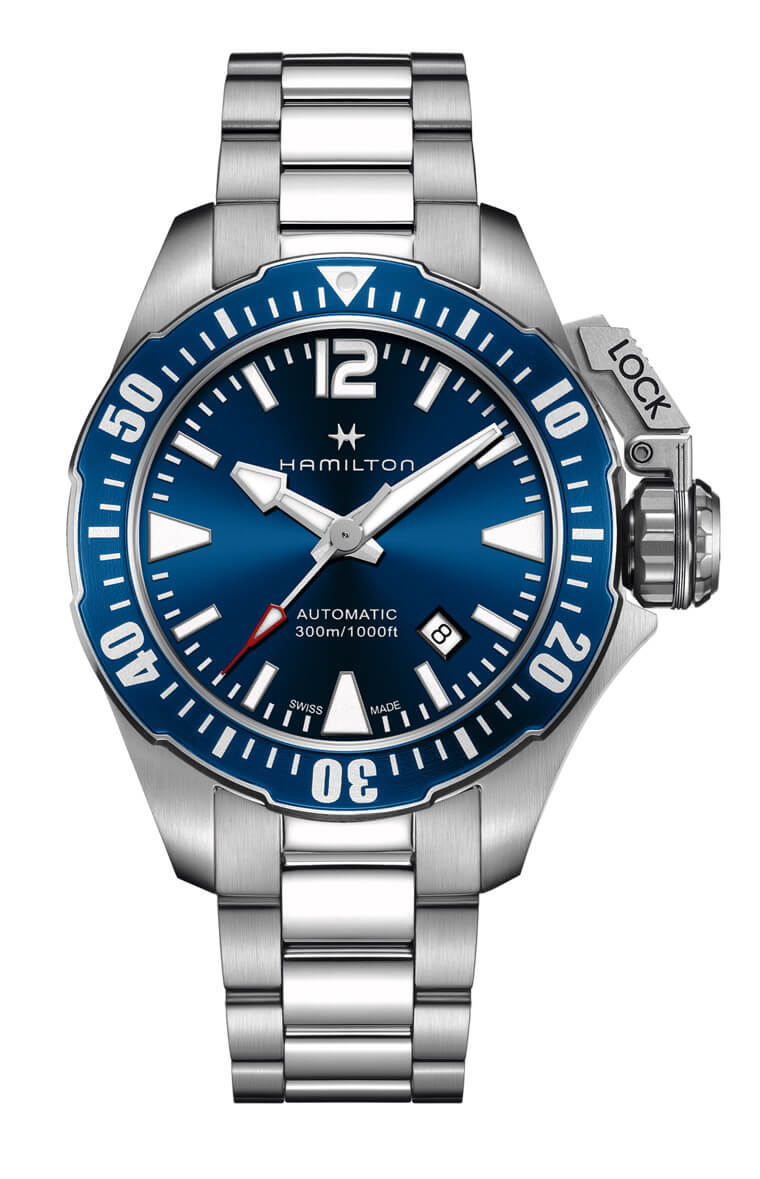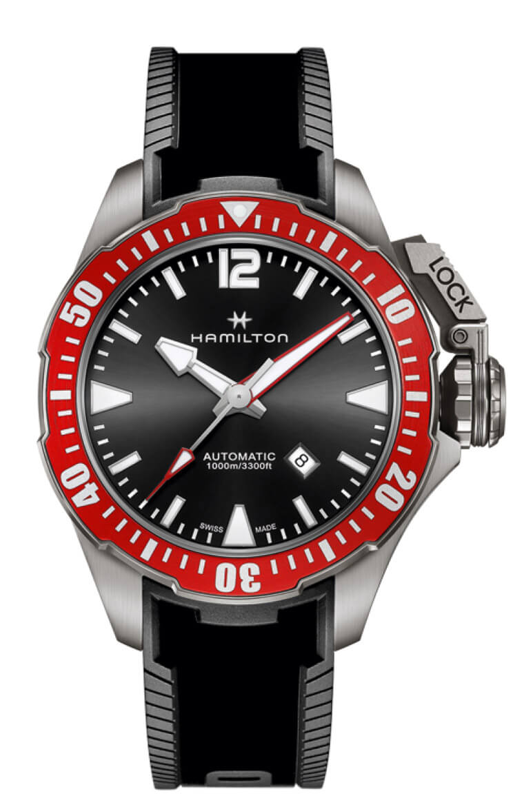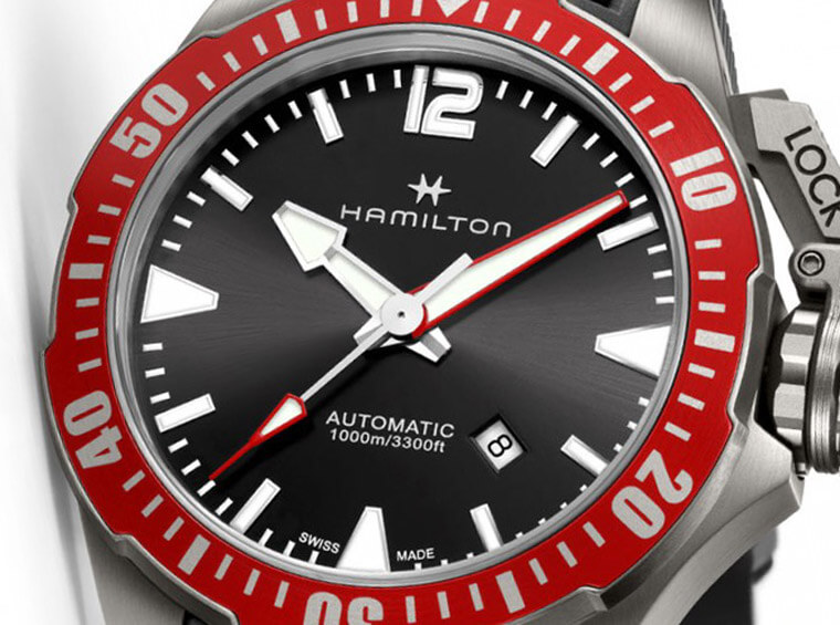 預算抓個5萬元以下想找機械潛水錶的選擇有很多,但是如果單就防水性能這一項來看性價比,HAMILTON漢米爾頓的Khaki Navy Frogman蛙人潛水錶絕對是很能讓人心動的首選之一,因為這款的鈦金屬版本定價差不多4萬5就有,但是它的防水能力卻達到1000米,在這樣的價位下卻能入手這樣的專業規格,還有比這更值得的選擇嗎?
