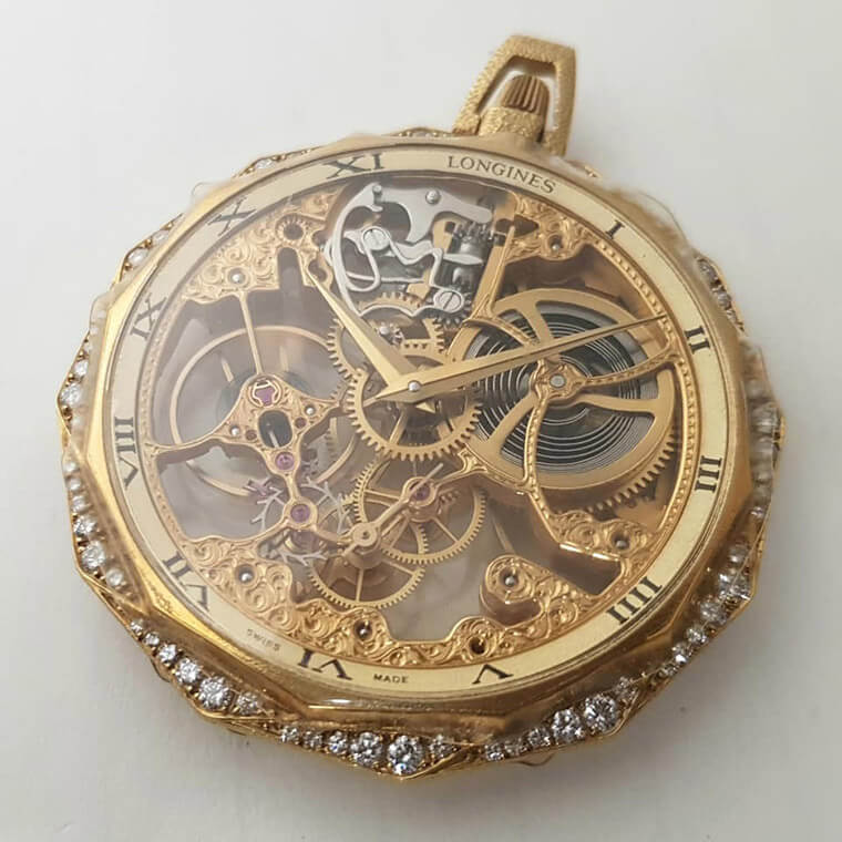 ▲LONGINES鏤雕懷錶,約1970年生產。