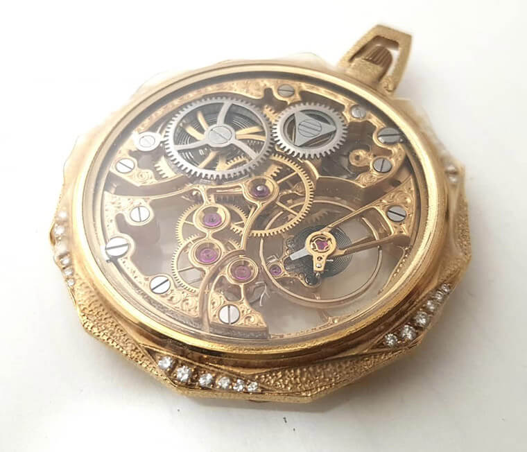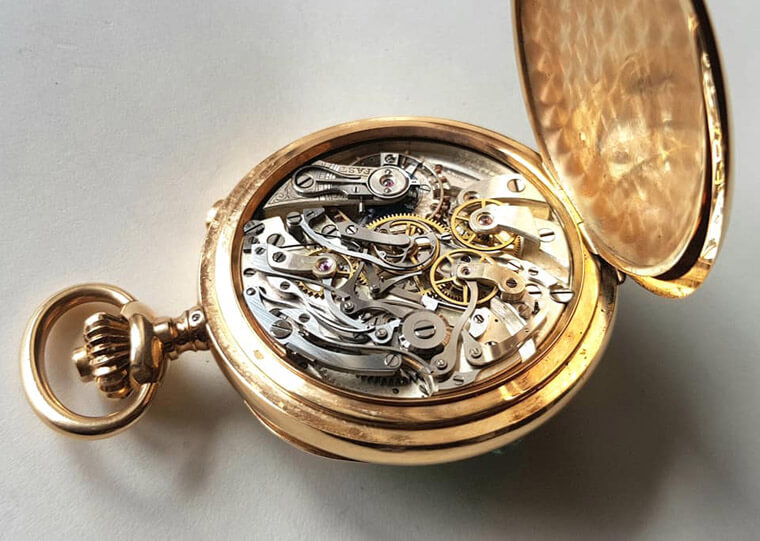 ▲浪琴追針懷錶擁有精密複雜的追針計時結構,可以看到百年前還沒有電腦與數位車床,製錶師仍能憑藉手工做出這樣的作品,令人讚嘆。