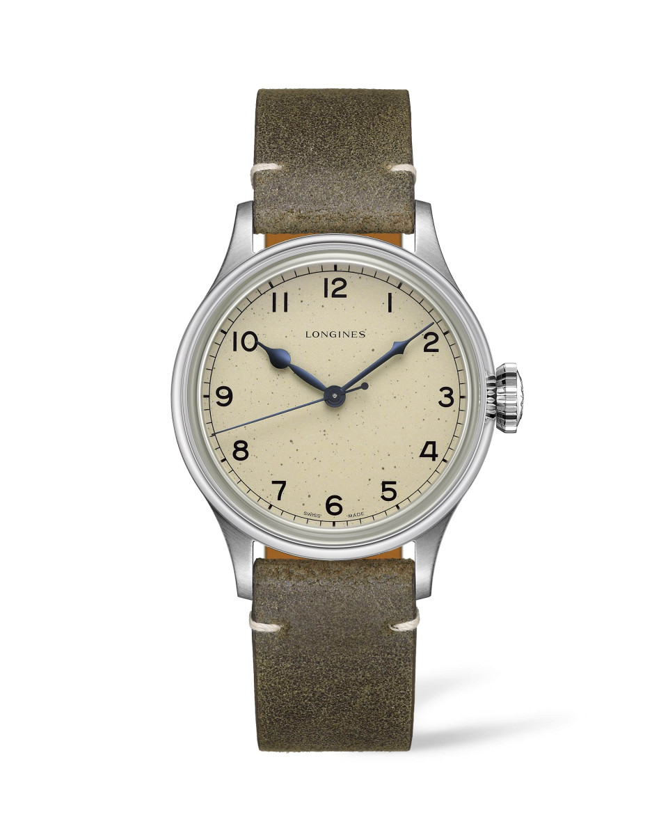 ▲儘管Heritage Military復刻軍腕錶搭載自動機芯,但此款時計是浪琴表目前眾多錶款中唯一未於面盤標示「Automatic」(自動上鍊)字樣的腕錶,以此保留1940年代的原始設計精神。