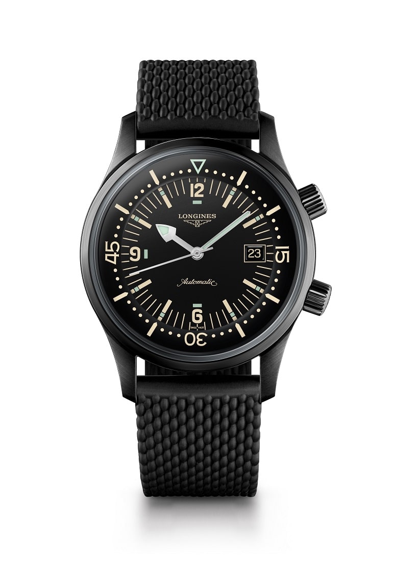 浪琴曾參與許多探險先鋒的超越極限旅程,而Legend Diver復刻傳奇潛水腕錶重新詮釋來自1960年代,水下探索以及軍事和潛水運動全盛時期的一款潛水錶,不僅忠實保留原版時計的鮮明風格,現更推出全新黑色版本,並採用了浪琴表專屬的L888機芯,更彰顯運動風格與其優雅氣息。為了忠實呈現原版腕錶的設計精神,包括Box鏡面、該年代的雙向旋轉內側錶圈設定皆在這款復刻腕錶上重現。在發揚1960年代精神的同時,Legend Diver也搭載較為現代的技術規格,像是黑色PVD的錶殼與錶帶、藍寶石水晶鏡面、旋入式後底蓋。2點鐘位置的錶冠則可以啟動與鎖定內側錶圈,讓佩戴者能判定剩餘的潛水時間。