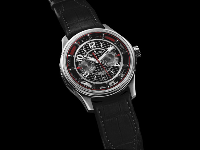 AMVOX7 Chronograph計時手錶錶盤的裝飾圖案完美再現了雅士頓.馬田六月發布的新型跑車——Vanquish的進氣格柵,無需細細審視,便令人過目難忘。而這種顯而易見的親緣關係成為一種導引,使得手錶的外觀設計與其技術性能完美相襯。積家的鐘錶師和工藝師們在細節裝飾和製作方面同樣用心良苦。黑色錶盤與深灰色計時盤上的白紅相間的色彩搭配,令整體更具可讀性;不同表面所採用的不同裝飾為手錶賦予了出色的深邃感。