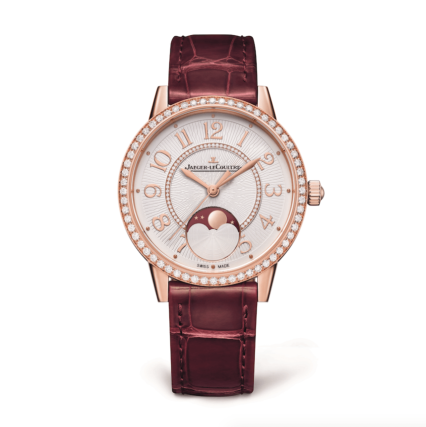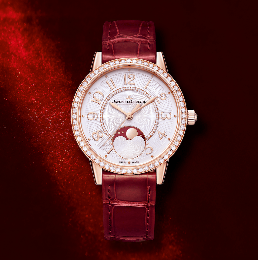 約會系列月相腕錶以玫瑰金錶殼搭配銀色璣鏤飾紋面盤,並在手錶上鑲嵌107顆精美切割的鑽石。面盤6點鐘位置的月相顯示窗內,月亮、星辰與雲朵相互輝映在紅色的天空,更添優雅的女性氣質,銀色扭索飾紋面盤上設有此系列標誌性的花形指針和數字,鑽石鑲座時標則展現簡約細膩的風格,雋永經典而不失時尚感。積家製錶師們以鐫刻、珠寶鑲嵌和手工璣鏤以及琺瑯技藝融匯於珍稀工藝工作坊中,將自然之美與時間之藝平衡融合於方寸之間。