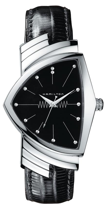在電影中菜鳥報到探員M泰莎.湯普森,挑選了經典的初代貓王Ventura系列,作為自己制式配錶。初代貓王Ventura系列問世,順應當時太空主義的前衛風潮,體現求新求變的時代底蘊,觸發漢米爾頓綁定新浪潮主義思維的繆思,賦予了Ventura掙脫傳統「非圓即方」的顛覆基因。Ventura系列盾型錶殼,結合多層次波紋錶耳設計,搭配面盤佈局原子震頻波紋與頭針式時標等原創特色,大膽突破「傳統包袱」成為錶迷心中的永恆經典。