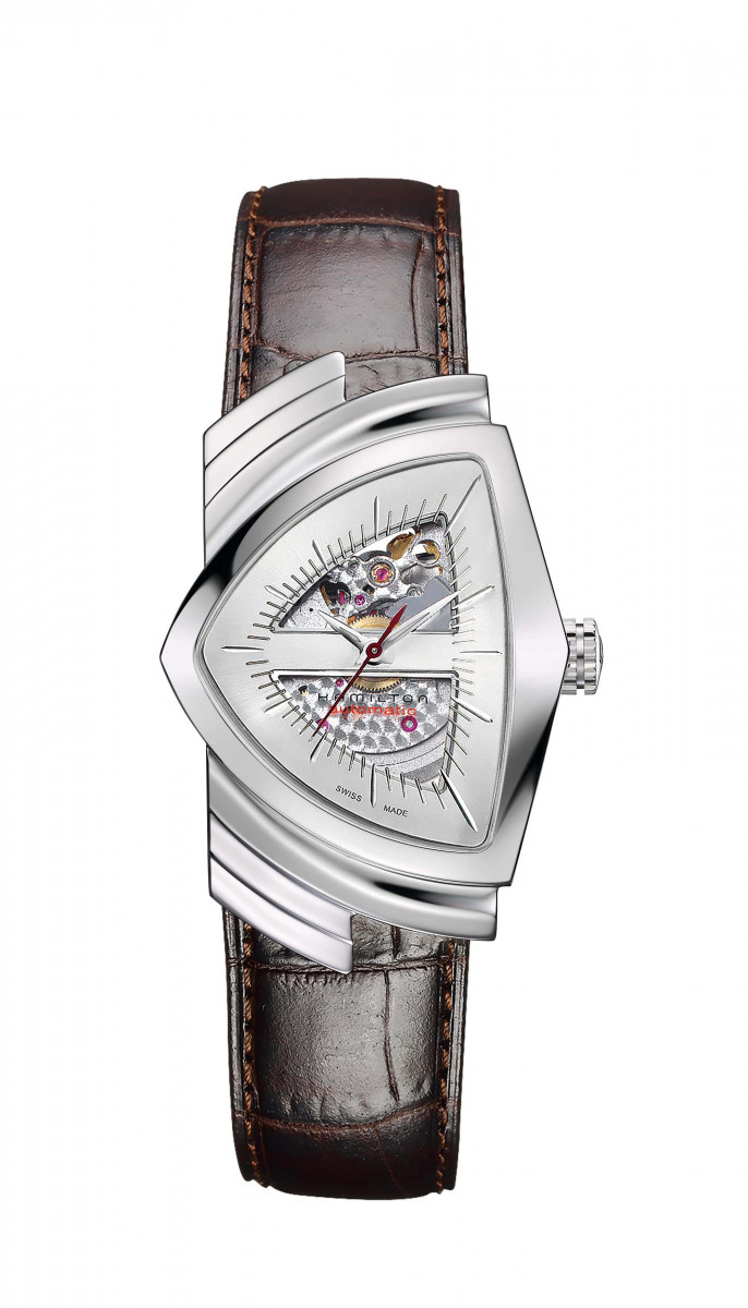 漢米爾頓配合將近20年的MIB星際戰警系列,推出全新篇章,為了角色的重立重塑,經典的Ventura也必須誕生全然不同的風格,雷神索爾飾演的最強星際戰警——探員H。有別於新晉探員身份,資深探員任務配錶,必須以更高規格禮遇。有鑑於此,漢米爾頓將探員H的錶款設計,注入了近幾年頗受消費者矚目的「動芯」元素,企圖透過鏤空錶的高級定位,區隔探員階級與資歷的差異化,足鑑漢米爾頓入戲指數可見一斑。