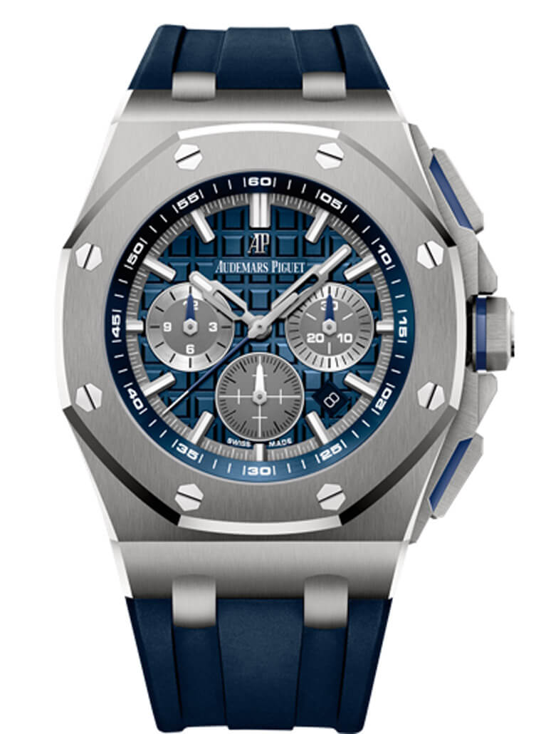 AUDEMARS PIGUET愛彼的皇家橡樹系列離岸型在1990年代推出,基本上它就是錶徑加大、外型更粗獷一點的皇家橡樹系列加強版,ROO這系列的運動性格表現在例如潛水錶款式上,而它還有個有別於皇家橡樹的地方在於功能性,相較於RO的主力款式是基本的二針和三針,ROO反倒是立足在計時碼錶功能上,所以系列中最常見的款式反而是計時碼錶,目前皇家橡樹離岸型的計時碼錶大概可分幾類,一個是44mm的左三眼計時錶,這兩年品牌推出的迷彩膠帶就屬於這一類;再來是與前款搭載同枚機芯的42mm款式,它有點像是初代ROO的正統基因繼承者,也是系列最具代表性的款式,最後則是皇家橡樹離岸型潛水計時碼錶,除了搭載機芯不一樣,它的雙眼計時盤和更強的防水性能(300米)也跟前兩款ROO計時錶有別。在這三者之外,2019年愛彼很有意思的再出了一款新的ROO計時碼錶,它不能完全歸類在前面提到的三種類別中,而是自成一格開創出ROO系列目前第四種計時碼錶選擇(當然這裡指的都是男錶,錶徑較小的女錶並沒有列入其中)。