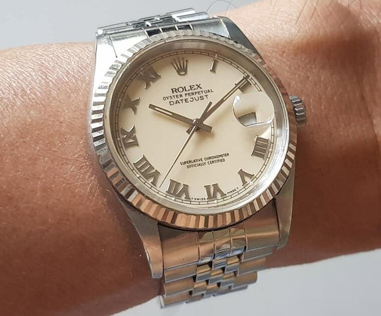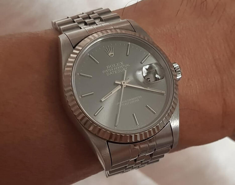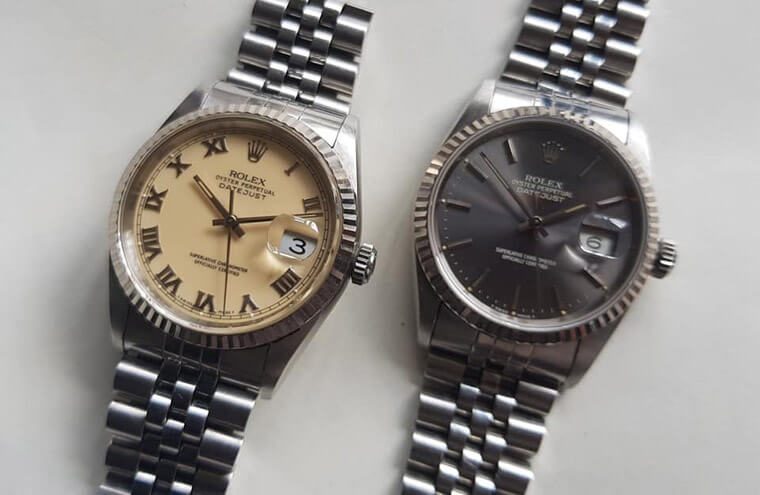 Roger分享他個人的最新經驗,他最近入手了一款灰面的16234,狀況還不錯,錶殼沒有被拋磨整理過,打開底蓋檢查機芯也沒有看到很多刮痕,代表被「動過手腳」的頻率也不高。至於另一款早幾年入手的奶油大羅馬字面盤,當年入手的價錢僅是這款灰面16234將近一半而已,短短幾年間就有不錯的漲幅。
