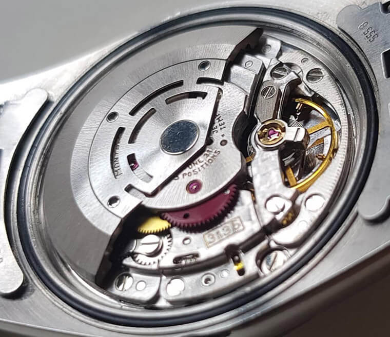 ▲3135於1988年推出,在將近20年後才被32系列機芯逐漸取代。勞力士機芯非常耐操精準,工業化的拋磨修飾依然精緻。雙層游絲,以兩大兩小的螺絲微調快慢,另有軸心間隙微調機制的設計,精密高級。