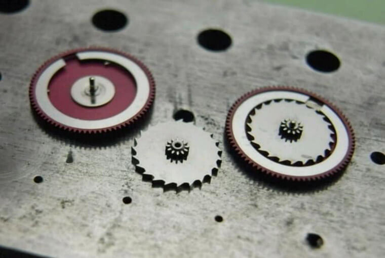 ▲紅輪仔為勞力士獨有的設計(即自動輪),內部有2個弧形勾擋防逆轉裝置,使鋸形齒輪只能前進或停止,無法後退,以達到雙向上鍊的效能,設計精良。