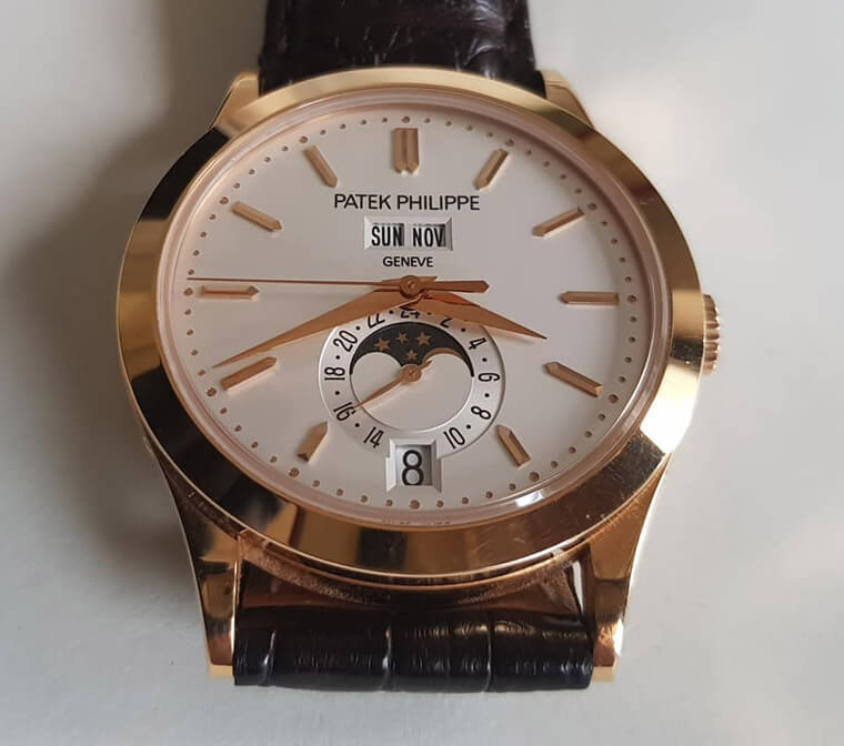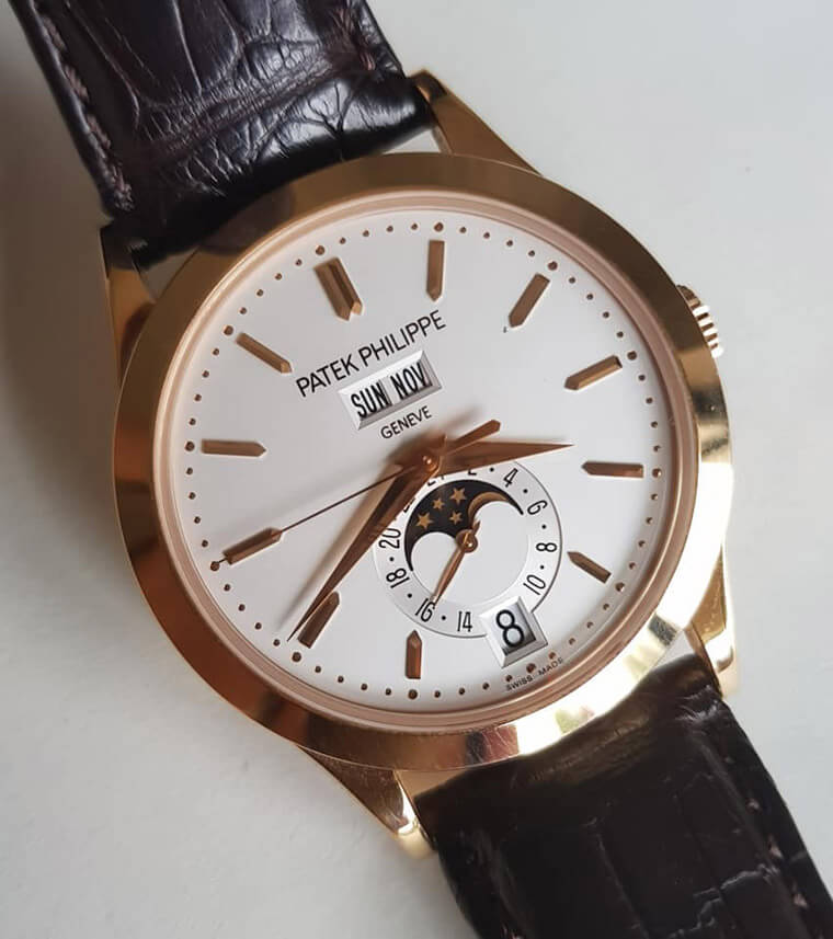 ▲只要有日期與月份功能就可稱為年曆錶。5396多了24小時,星期與精密的月相(122年誤差一天)顯示。