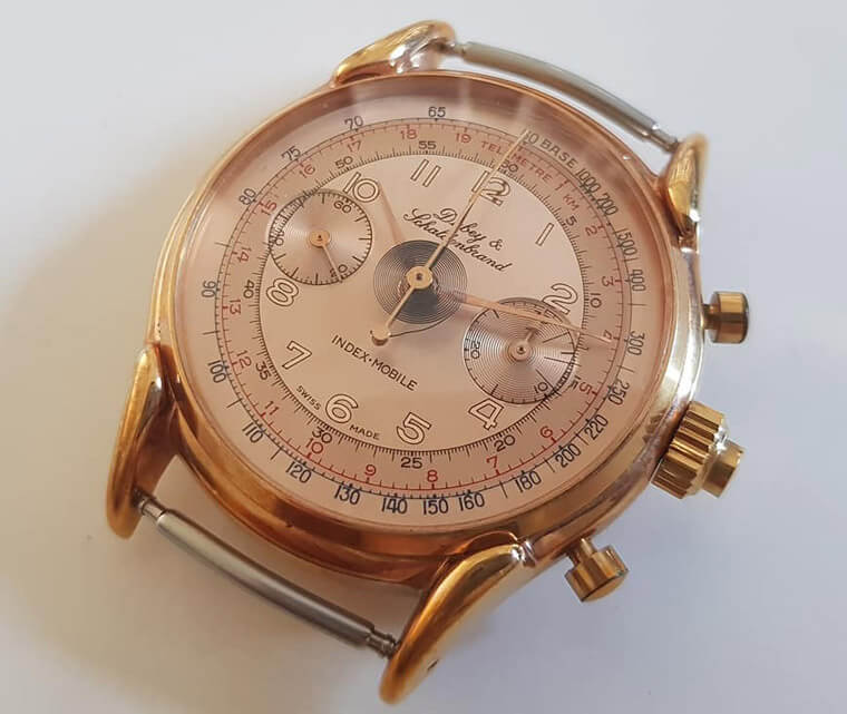 ▲原創的杜彼蕭登簡易型追針計時錶,這只也採用圓形按把設計。