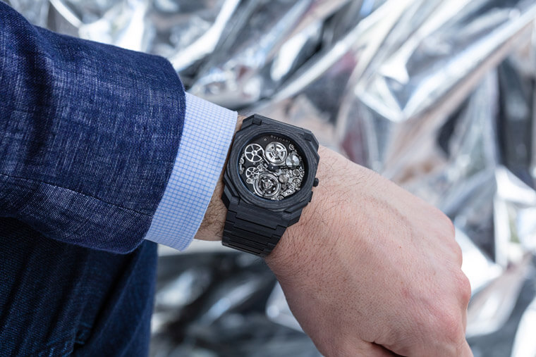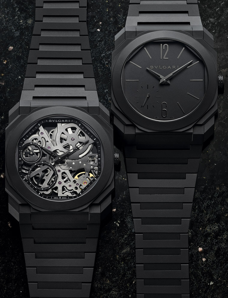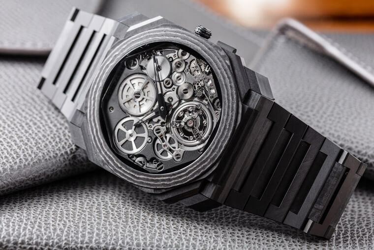 在Octo超薄家族剛建立的前兩三年,寶格麗乃是選擇高級錶比較常見的鉑金、K金或是鈦金屬等這些材質,但到近年之後,品牌著手讓腕錶外觀顯得更有自己的特色,因此像是噴砂鈦金屬、2018年隨著Octo Finissimo Minute Repeater Carbon改款而面世的CTP碳薄層材質等相繼現身,令超薄錶不只是戴在手上呈現舒適有感的輕薄度,就連外觀的第一印象也在Octo那種很有辨識度的八角造型多切面錶殼之餘,塑造更強烈的視覺吸引力。
