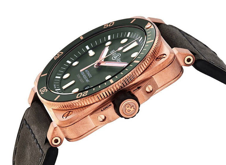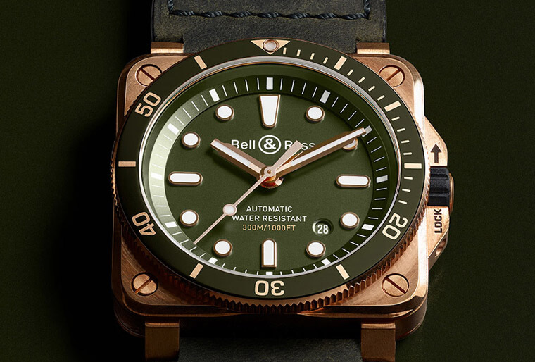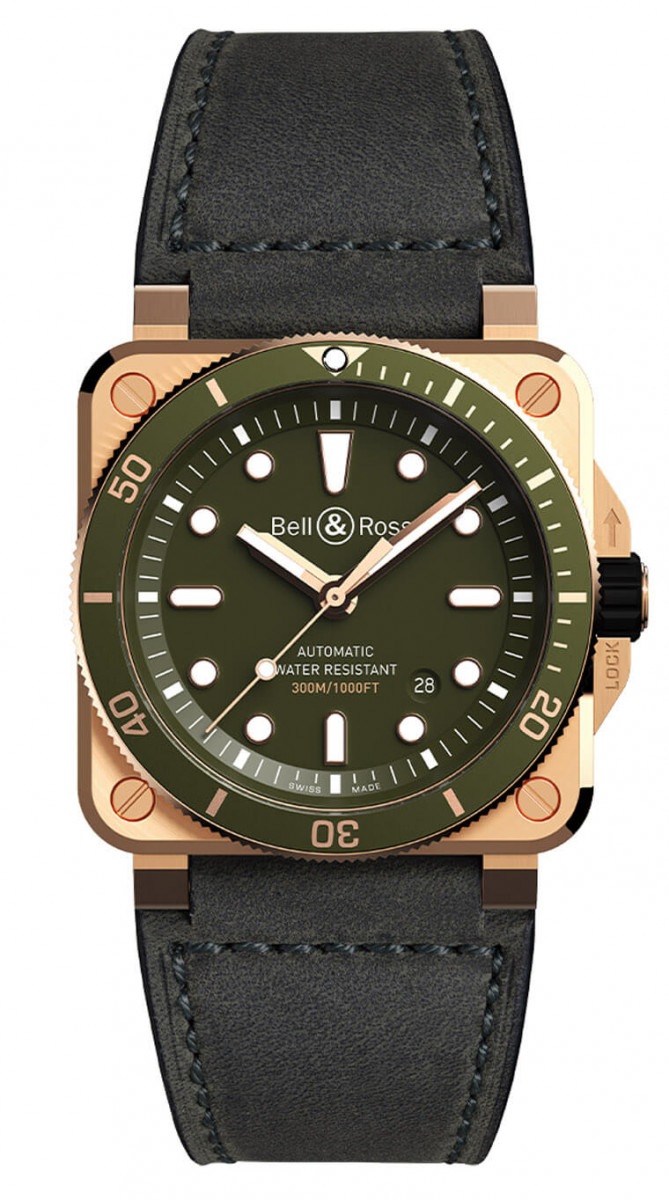 現代銅殼錶的流行是由沛納海在2011年推出的PAM00382所引爆,往後幾年又有一眾品牌加入才造就了目前的勢頭,而BELL & ROSS柏萊士是在這當中很早就跟進的一家。2018年他們首度將前一年推出的方殼潛水錶換上銅殼,結合方形和青銅兩大話題元素,果不其然一推出詢問度就頗高,這也讓品牌2019年趁勝追擊推出新款的BR 03-92 Diver Green Bronze,原則上整體的設計、材質還是不變,但是柏萊士這次小小調整了手錶的配色,讓它能夠和去年推出的款式做出一些區隔。