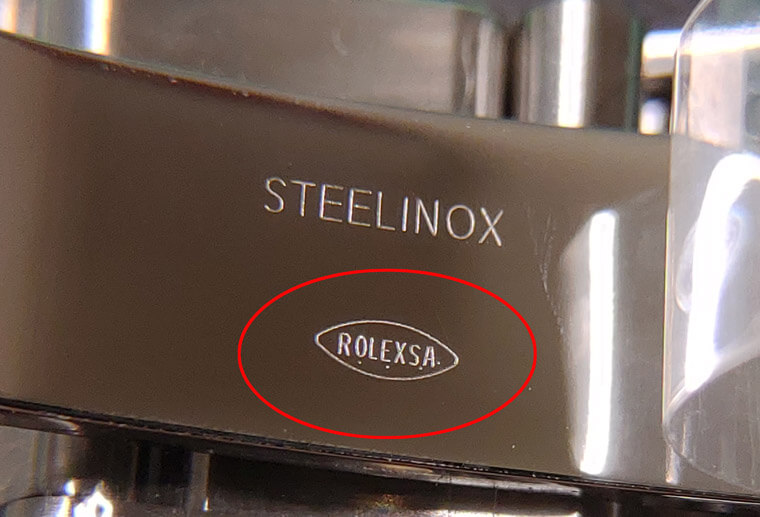 山寨勞力士出名的AR廠和N廠有比較明顯的差別,在錶扣內側的”ROLEXSA”字樣部分,AR廠已經可以做出字體下方同樣有四個原點,字樣周圍的曲線也比較擬真,也就是在上下弧線的兩邊會有比較銳利的折角,不像N廠是弄成簡單的橢圓線條,此外N廠目前也還沒把四個圓點加上去。