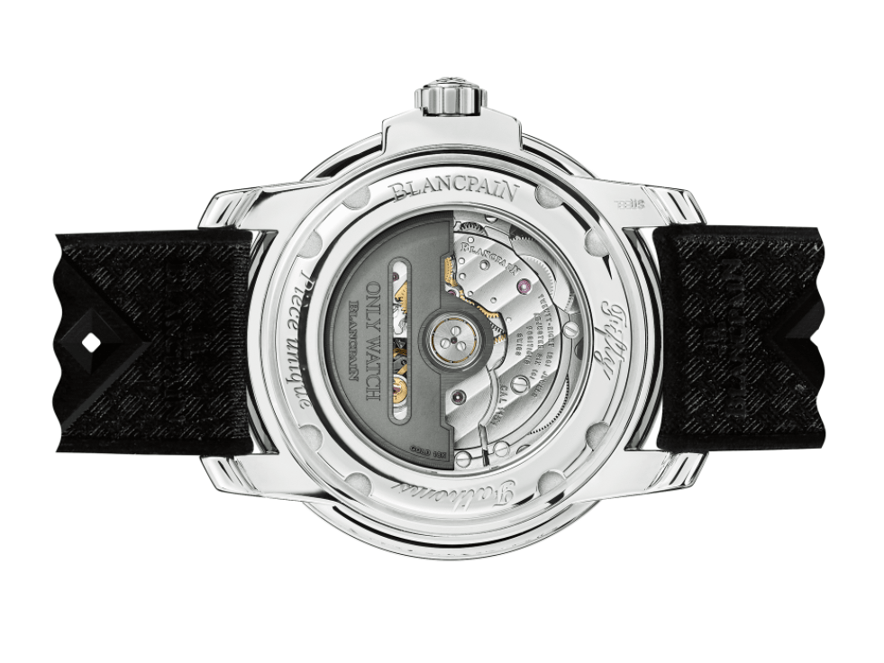 寶珀更將腕錶的複代風格元素與標誌性的單向旋轉表圈及淺藍色刻度巧妙結合,並鑲嵌防刮弧形藍寶石玻璃對其進行細緻保護,這是品牌於2003年推出的一項創新技術。腕錶搭載1151自動上鍊機芯,保有其卓越的運動功能,亦能彰高級製錶的打磨工藝。透過藍寶石玻璃表背,刻有“ONLY WATCH”字樣及寶珀品牌標誌的自動盤能看得一清二楚。
