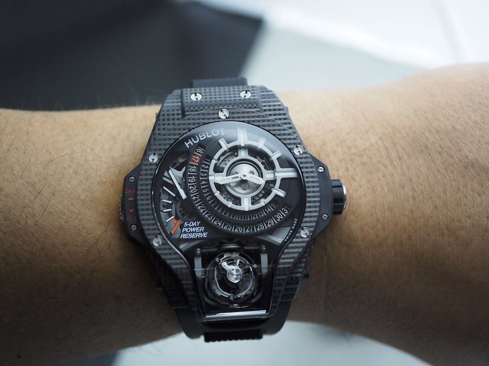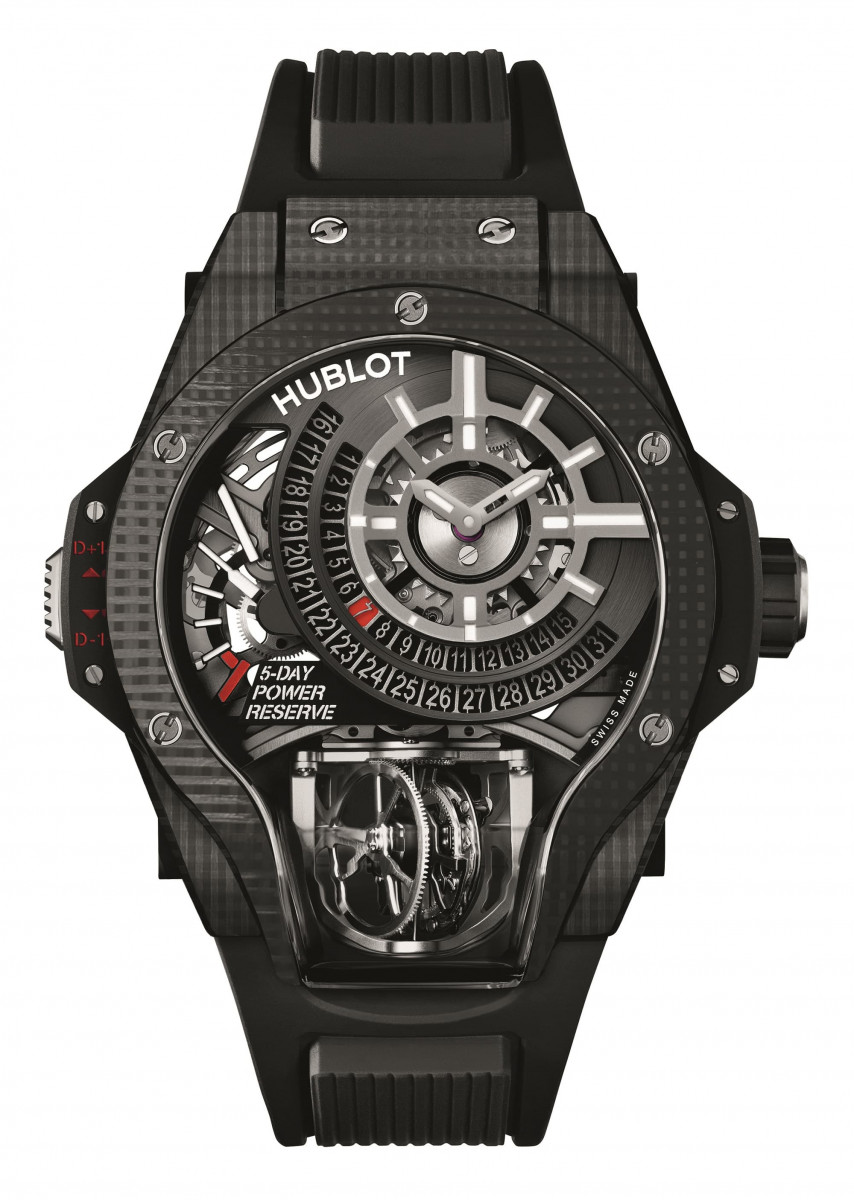3D 碳纖維材質/HUB1280自動上鍊機芯/偏心時、偏心分、日期顯示/動力儲存顯示/藍寶石水晶鏡面/防水30米/錶徑49mm/參考價:NT$ 5,886,000