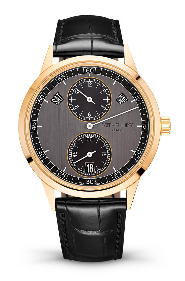 最先於2011年推出的5235算是相當特立獨行的一分子,因為它雖然還是處在指針與視窗的模式下,但是卻採用PP旗下也很罕見的三針一線配置,當年推出的白金款在市場上存在了很長一段時間,直到2019年品牌新推出玫瑰金款5235/50R之後,白金款才終於確定交棒停產。新款5235/50R除了改成玫瑰金錶殼,就連面盤也一併換成石墨與黑色雙色組合,其中主面盤經過了垂直磨拭加工,讓石墨色多了特別的質感。三針一線依舊是這款的最大賣點。錶款面盤大量運用了軌道式刻度設計,包括主面盤、12點的小時盤和6點的小秒盤都有,讓古典優雅氣質蔓延在整只錶之中。