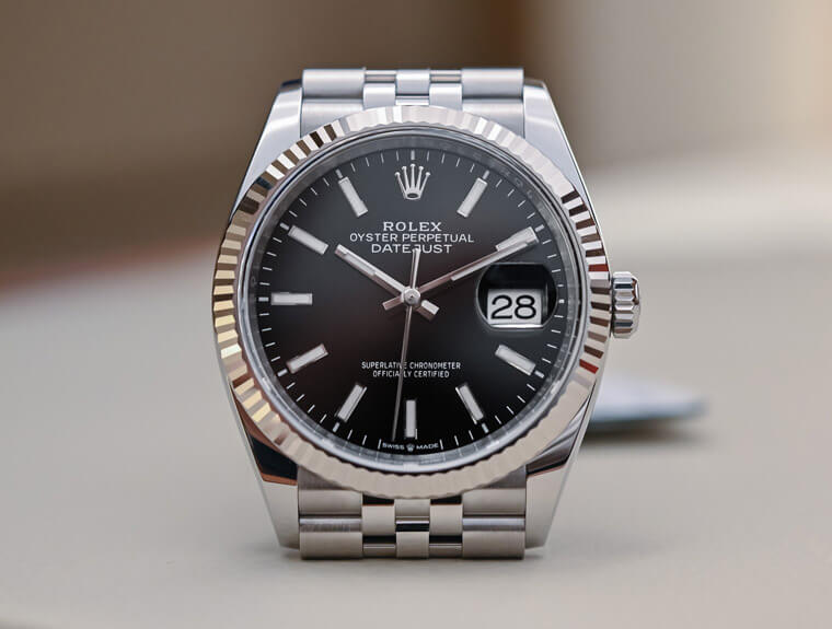 Datejust與同門的Oyster Perpetual有點類似,都算是勞的入門款,款式一樣多元,但是前者的造型設計比較多變,例如光是錶圈就有拋光錶圈、坑紋錶圈甚至鑲鑽錶圈等等,鍊帶也有三板帶、五珠帶等等,再者以機芯來看,目前Datejust逐步換上2236或是32系機芯,從規格比較又比Oyster Perpetual在吸引人一些,而且Datejust最大錶徑有41mm,反觀Oyster Perpetual則為比較秀氣點的39mm,而且Datejust再怎麼說也還多了日期顯示,因此如果把條件相近的Datejust和Oyster Perpetual放在一起,即使兩者的價格範圍多少有些差距,但在預算足夠的情況下,一般而言消費者還是會傾向挑選Datejust。