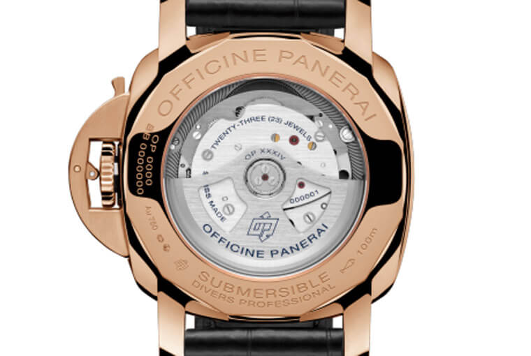 PAM00974/Goldtech™金材質/OP XXXIV自動上鍊機芯/時、分、小秒、日期顯示/藍寶石水晶鏡面、透明底蓋/防水100米/錶徑42mm/參考價:NT$ 816,000