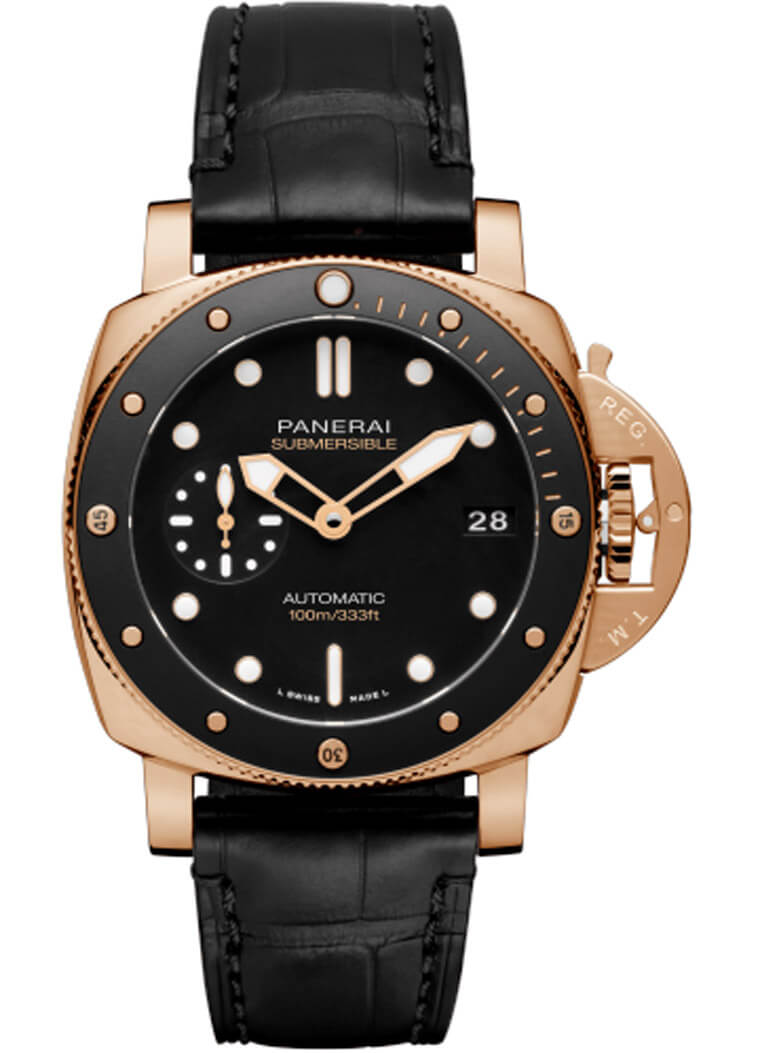 PANERAI沛納海的Submersible系列以防水性佳的潛水錶為主,這系列通常都是用不鏽鋼或鈦金屬等材質製作錶殼,不時也會出現Carbotech、BMG-TECH等這種高科技又強調保護性的新材質,但近期品牌推出了一款新作PAM00974倒是有點不一樣,它是目前Submersible系列中除了特別版以外定價最高的款式,主要原因在於它採用了貴金屬錶殼,而且它也是目前這系列中唯一一款貴金屬材質的手錶,所以多少會比較受到矚目一點。