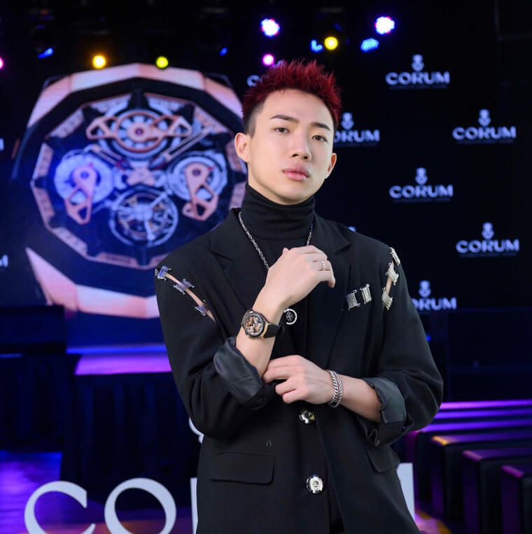 CORUM崑崙錶近期發表Admiral海軍上將系列新品,功能從基本三針到複雜如計時功能甚至陀飛輪應有盡有,除了有45mm和42mm款式,品牌也推出38mm適合女性佩戴的海軍上將鑽錶,將其招牌的十二邊形錶殼與海事旗元素淋漓盡致展現。這次海軍上將系列新品發表會邀請到了2019年金曲獎新人王ØZI親身演繹新品中的鏤空自動上鍊手錶,手錶特立獨行的外觀正好呼應像ØZI這般年輕世代所追求自我個性的風格,展現高級瑞士錶也能與時俱進的開放態度。