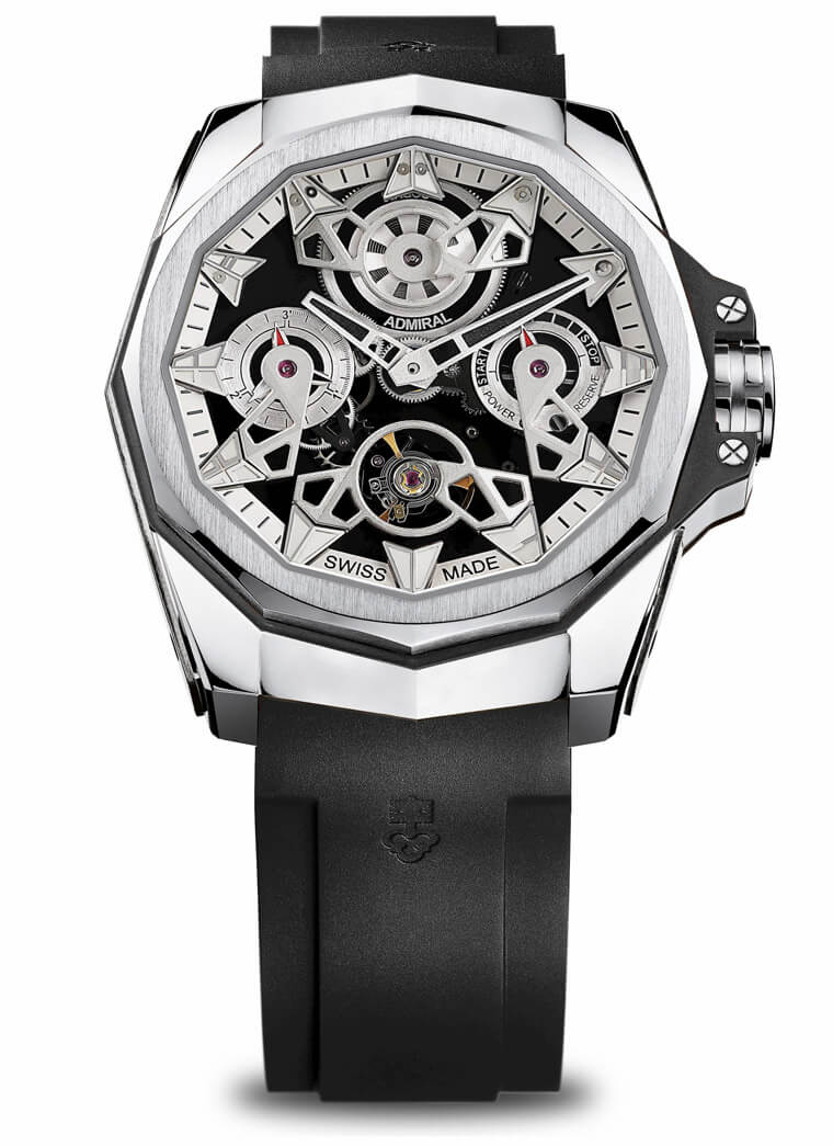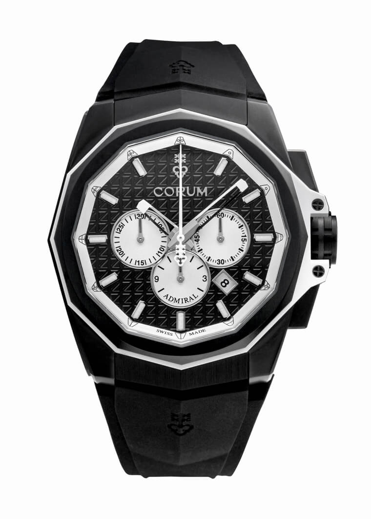 PVD鈦金屬材質/CO 132自動上鍊機芯/時、分、小秒、日期顯示/計時碼錶功能/藍寶石水晶鏡面、透明底蓋/防水100米/錶徑45mm/參考價:NT$ 350,000
