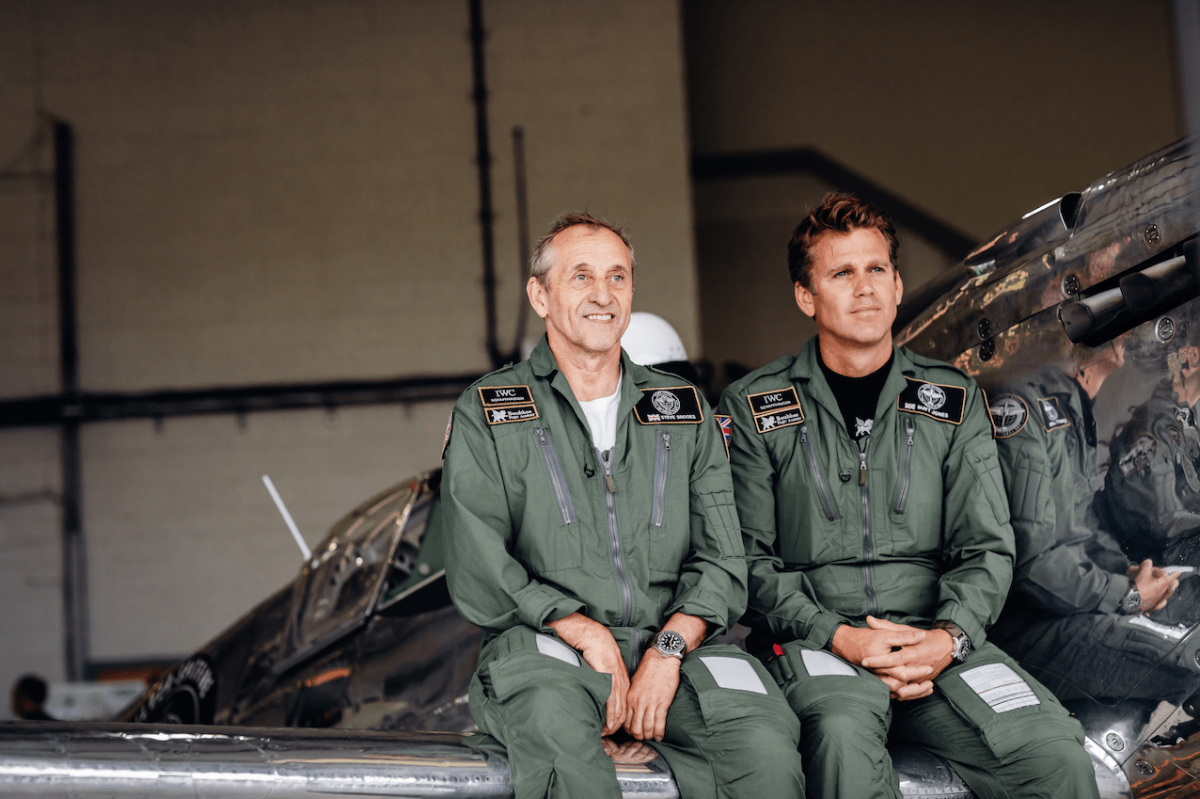 ▲銀翼噴火戰鬥機執飛人Steve Brooks與Matt Jones佩戴噴火戰機飛行員世界時區手錶最長的飛行限量版。