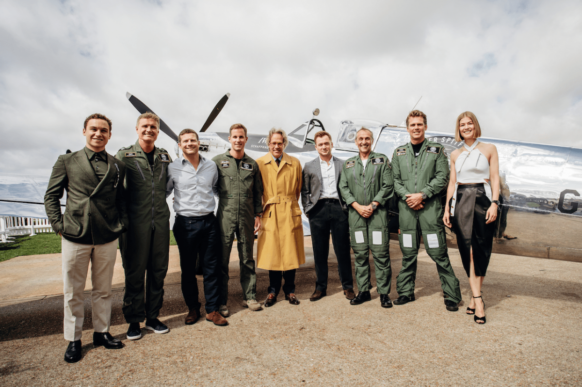 ▲從左至右:英國演員芬恩·科爾、IWC品牌大使大衛·庫特哈德、英國著名電視廣播節目主持人Dermont O'Leary、IWC首席執行官克里斯托弗·格萊恩格-海爾、Richmond公爵先生、英國演員塔倫·埃哲頓、飛行員Steve Boultbee Brooks和Matt Jones、IWC品牌大使羅莎蒙·派克。