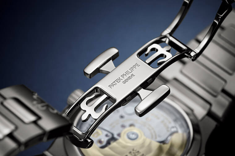 鉸鍊式錶帶仍為Nautilus女錶的一大特色,百達翡麗對於細節的處理一直相當注重,錶殼以及錶鍊所有的稜角均經過細緻打磨拋光成弧狀鏡面,修飾的平整滑順。此外品牌也展現出設計的貼心周到思維,因為7118的摺疊扣擁有快調設計,在摺疊扣處於閉合狀態時佩戴者只要拉起鍊帶(不管是兩邊同時或是只單拉一邊都可以)就可以進行鍊帶長度的調校,經過快調後的錶帶長度可以延長2~4mm的空間,佩戴者隨時可以把錶帶調到最適合自己的長度。
