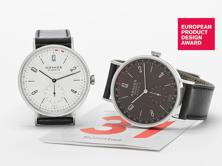 Tangente Update剛開始是推出白面款,後來NOMOS又在2019年追加以釕金屬製成的深灰色面盤版本,用以指示日期的色塊則還是維持紅色。這系列手錶從推出以來就獲得不少好評,包括拿下2018年GPHG的Challenge Watch挑戰獎,也在設計界中奪下iF獎,市場上的詢問度自然也跟著水漲船高;而就在最近,Tangente Update又「中獎」了,這次錶款獲得的是歐洲產品設計獎(ePDA),此獎項每年由設計領域專家組成的評審團審核,目的是要選出那些不僅設計精美,而且又能讓生活更加便利的產品;ePDA的評選標準包括幾個層面,例如創新表現、美觀、功能性和可持續性,經過激烈的評選競爭後,Tangente Update在眾多對手中脫穎而出,再度展現品牌引以自豪的設計實力。