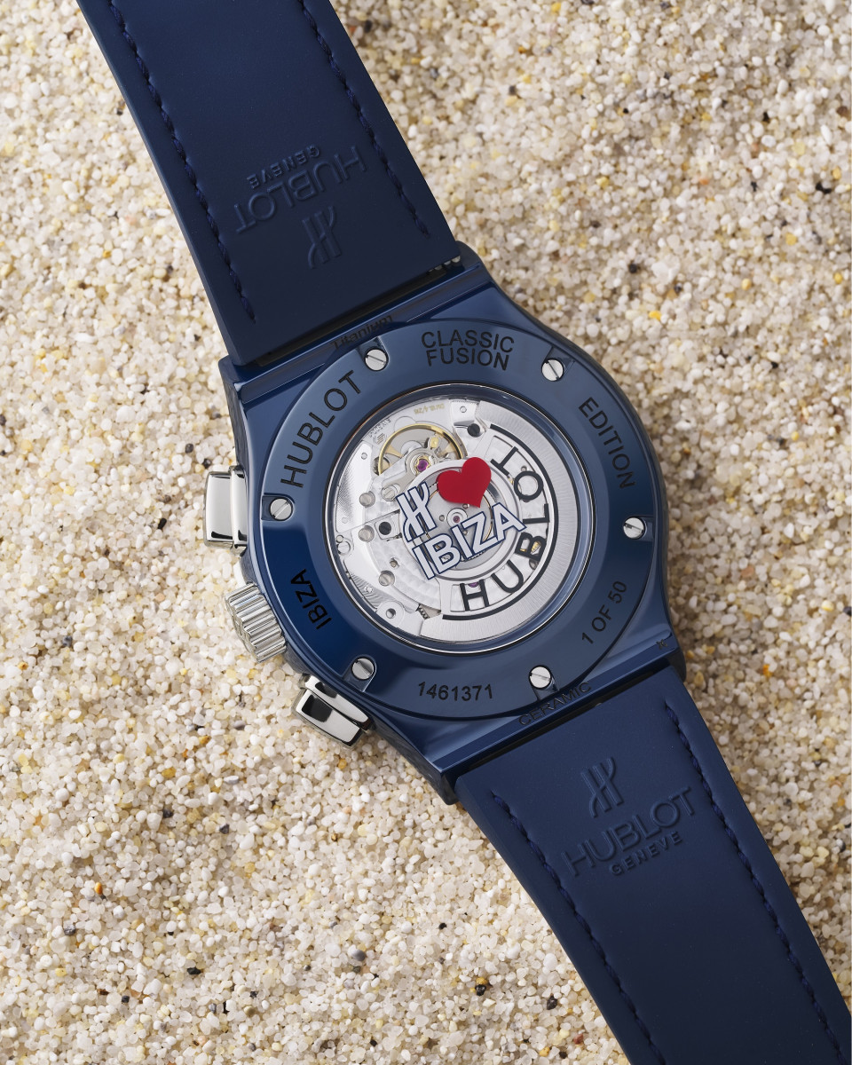 ▲錶背刻印"Hublot Loves Ibiza"字樣。