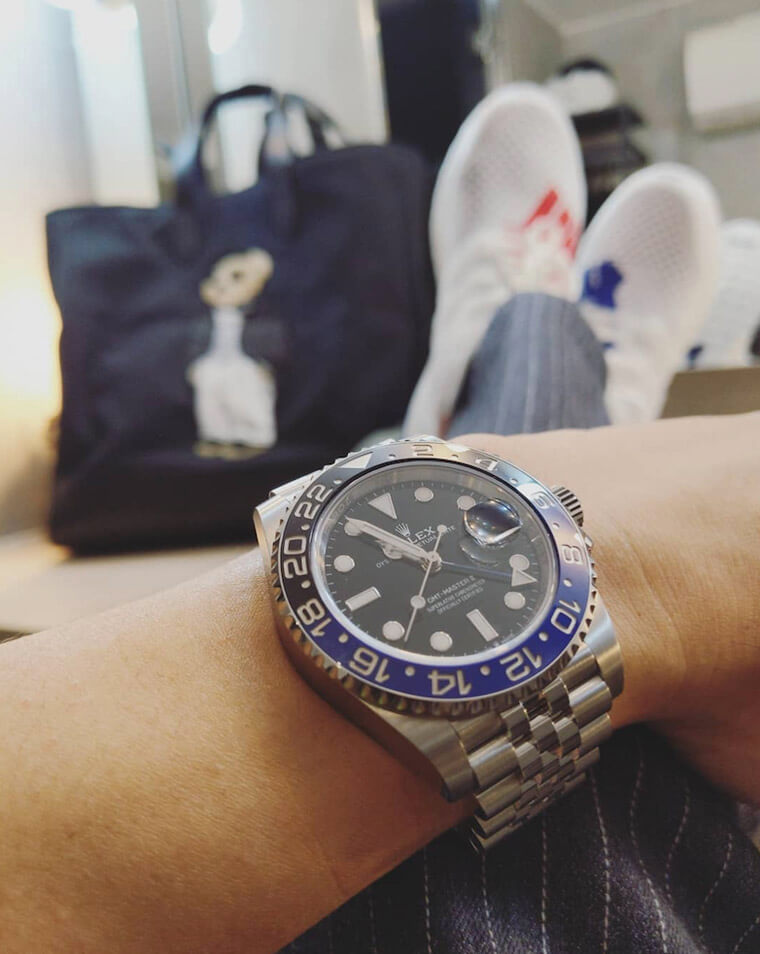 除了以上這些手錶品牌和款式之外,林俊傑對勞力士更是喜愛有加,他曾經曬過自己的Daytona 116500(白面)或是Paul Newman,但如果光以今年內他佩戴手錶的頻率來看,GMT-Master II 126710BLRO肯定是JJ最常戴著入鏡的心頭好,這款百事圈剛在2018年改款新出,除了改為不鏽鋼錶殼,紅藍雙色錶圈也升級為陶瓷材質,同時勞力士也把鋼殼換上五珠帶,讓貴金屬款式保留三板帶以做出區隔,126710BLRO的官方定價是台幣306,500,但我們都知道因為這錶實在太搶手,實際入手價絕不止與此,而如果只是貴一點也就算了,但想要得到它還必須要先在排隊清單上等上一段時間或是配錶才拿得到,小編是不確定JJ實際入手的時間,但從他的貼文時間點推估,至少也是在今年2月以前的事,也就是他比徐若瑄再更早一些拿到126710BLRO,從那以後我們就很常在林俊傑的貼文中看到百事圈的身影。