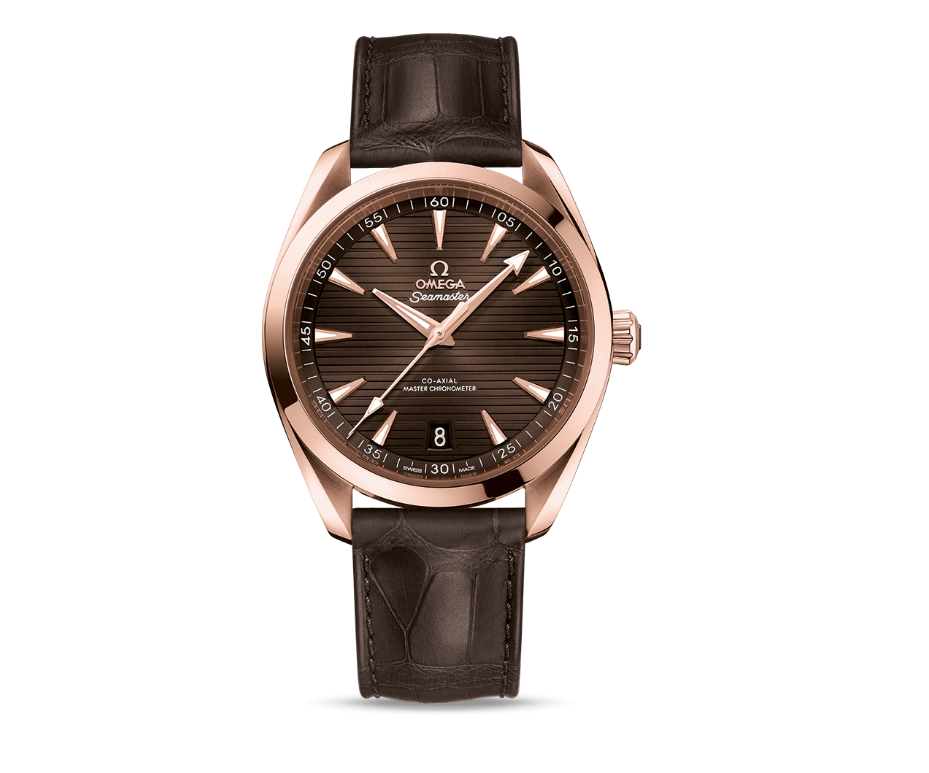 這款41毫米的手錶配備對稱18K Sedna™金錶殼,並搭載獨特水平「甲板紋」的陽光紋棕色錶盤,面盤亦設有6點鐘日期視窗及填有白色Super-LumiNova超螢光塗料的18K Sedna™金指針與時標,搭配棕色皮革錶帶,並由歐米茄8901大師天文台機芯所驅動。這款機芯獲得瑞士聯邦計量科學研究所的鐘錶產業最高精準性與性能標準的認證。