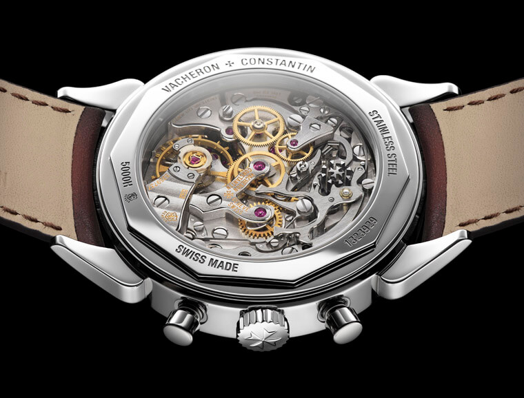 錶款搭載的1142機芯是由Lemania 2310修改而來的,長久以來都是PP、寶璣等等同屬頂級品牌的錶廠愛用的型號;VC在幾年前已經將1141升級到1142,比較主要的修改是將機芯震頻從18,000增加到21,600vph,除此之外游絲擺輪的微調機構也做了調整。而雖然在2015年那時VC也推出了自製的計時機芯3000系,不過同年發表的新款計時碼錶當中,包含這款在內有數款並未採用新機芯,其中的用意我們不得而知,不過若是從復刻錶的角度來看,稍微保留一點舊時代的氛圍的確也更符合復刻錶的主題。這枚手上鍊機芯表面具有高級錶廠才能見到的修飾打磨工藝(通過日內瓦印記),另外它的動力儲存48小時不算多,但也會讓佩戴者必須更緊密地幫手錶上鍊,感受與機械互動的感覺,這也是收藏這種復刻錶時需要先體認的重點。