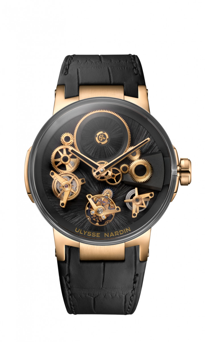 ULYSSE NARDIN雅典錶推出全的經理人系列自由之輪陀飛輪限量版腕錶,可說是迄今為止最引人注目的創新作品之一,手錶徹底顛覆製錶工藝,機芯在藍寶石水晶玻璃下猶如太空幻境般的自在懸動,機芯架構極具未來主義風格,同時兼備實用功能與美觀的藝術品。